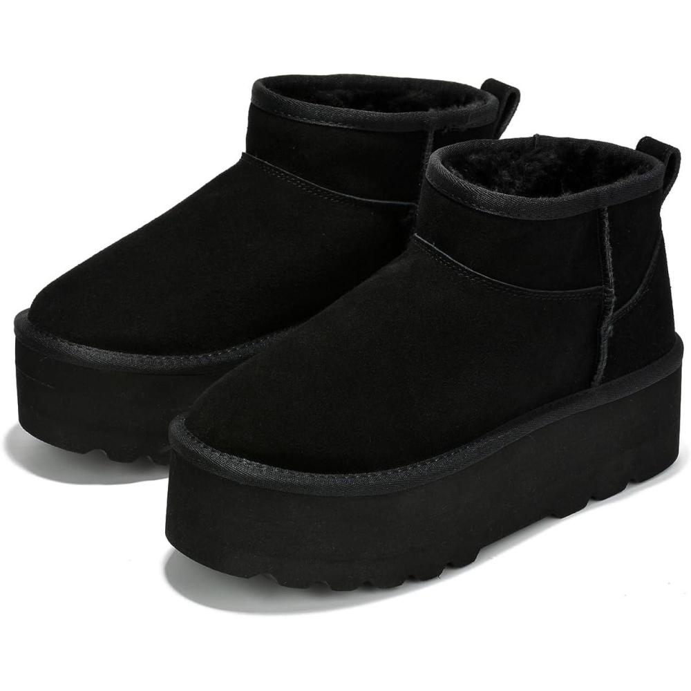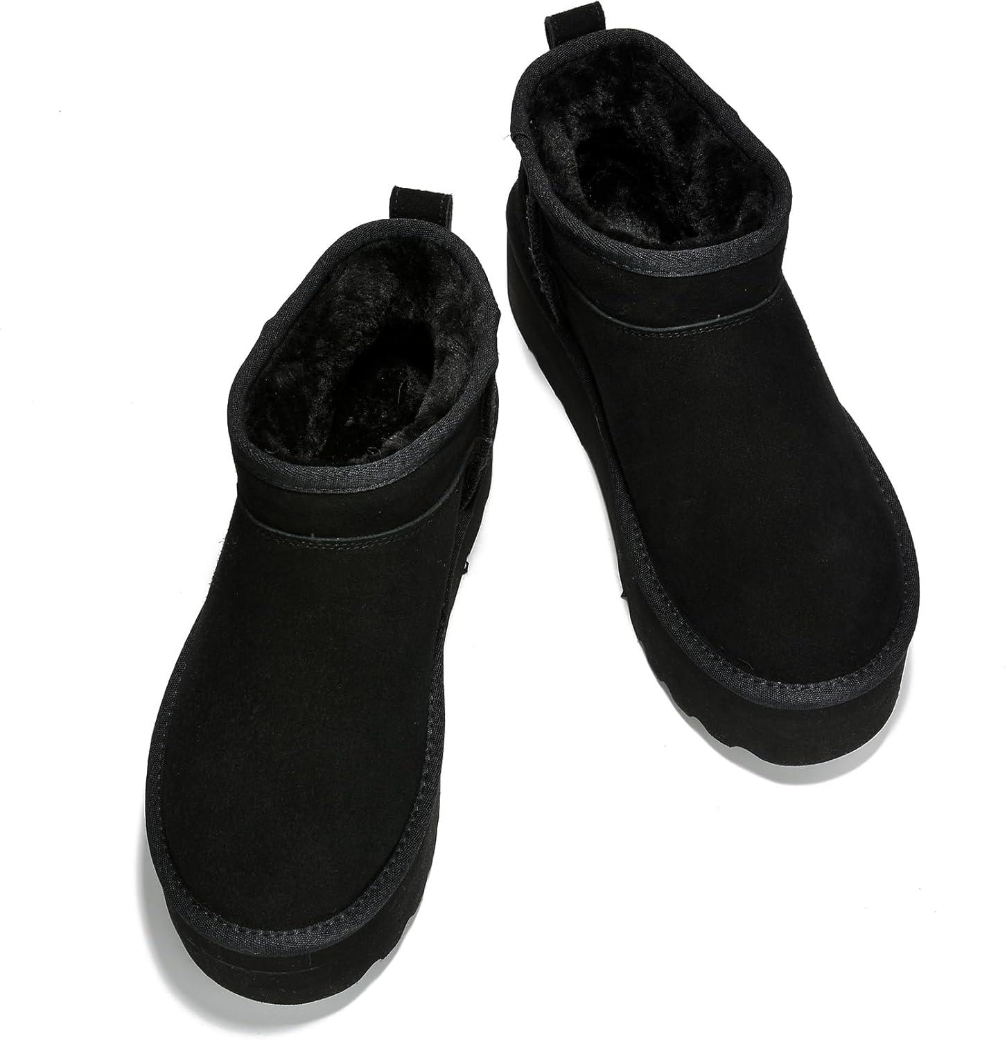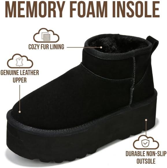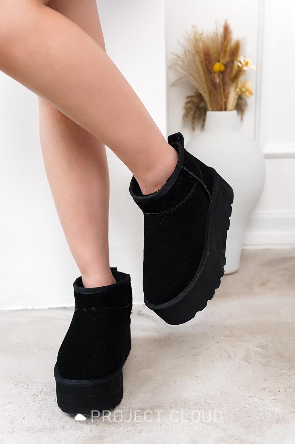 Project Cloud 100% Genuine Leather Ankle Boots for Women – Anti-Slip Memory Foam Insole Womens Boots – Lightweight Winter Womens Shoes, Ankle Booties for Women (Huggy)(Black)