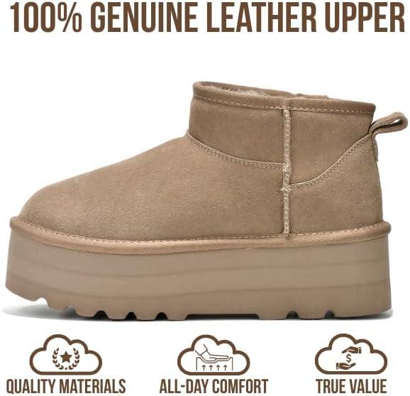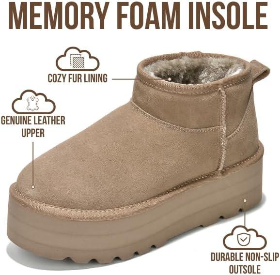 Project Cloud 100% Genuine Leather Ankle Boots for Women – Anti-Slip Memory Foam Insole Womens Boots – Lightweight Winter Womens Shoes, Ankle Booties for Women (Huggy)(Taupe)