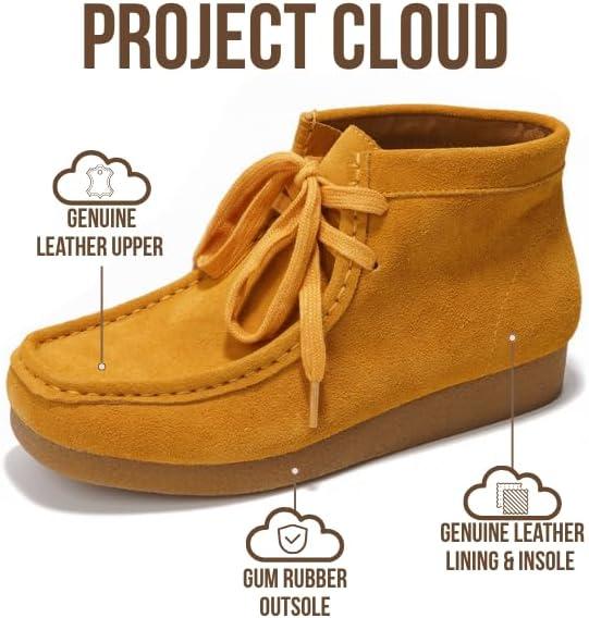Project Cloud 100% Genuine Leather Ankle Boots for Women – Lightweight & Non Slip Womens Shoes – Memory Foam Insole Chukka Boots – Water Resistant Fashion Shoes for Women 2025 (Wally Boot)(Mustard)