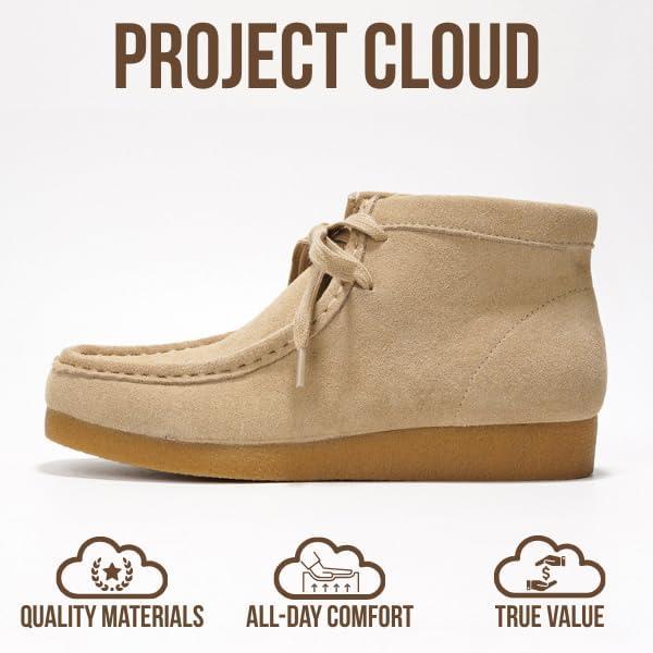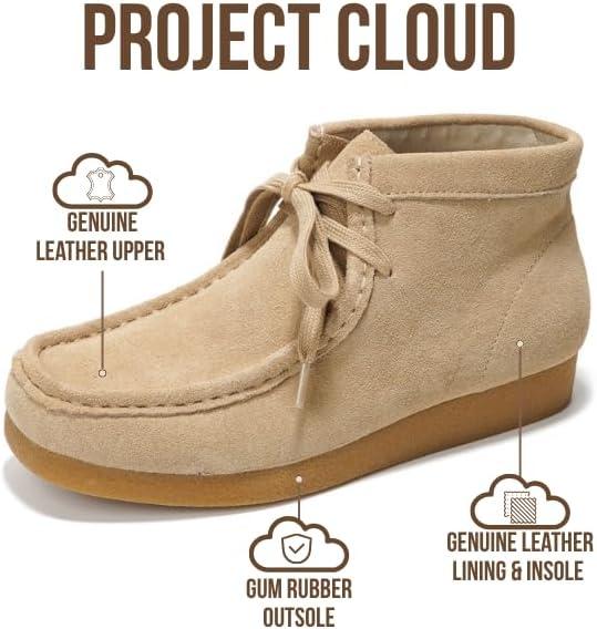 Project Cloud 100% Genuine Leather Ankle Boots for Women – Lightweight & Non Slip Womens Shoes – Memory Foam Insole Chukka Boots – Water Resistant Fashion Shoes for Women 2025 (Wally Boot)(Wheat)