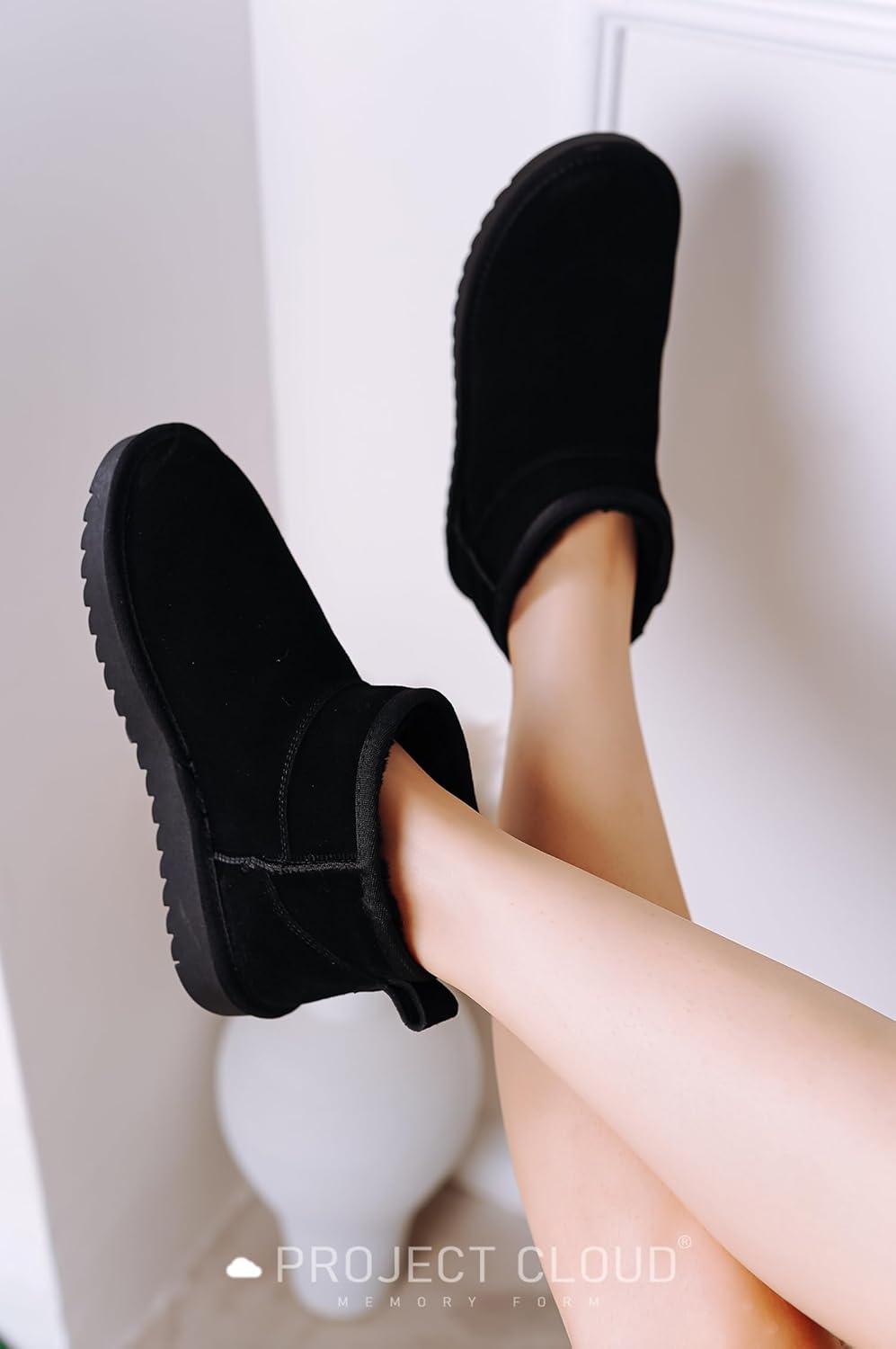 Project Cloud 100% Genuine Leather Ankle Boots for Women – Water Resistant with Memory Foam Insole Winter Boots for Women – Trending Shoes & Comfortable Women’s Ankle Boots (Hippy)(Black)