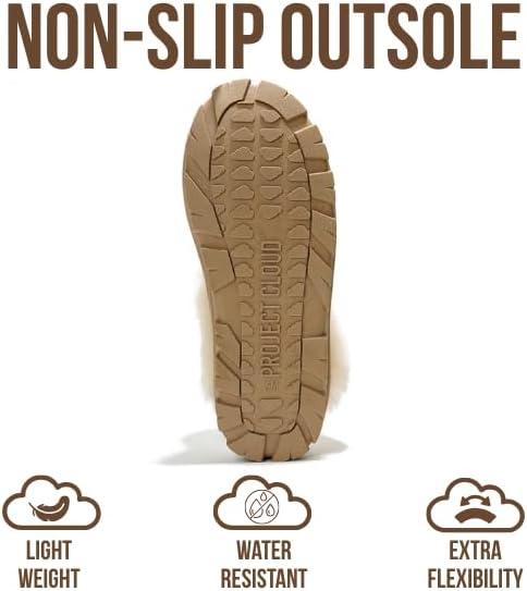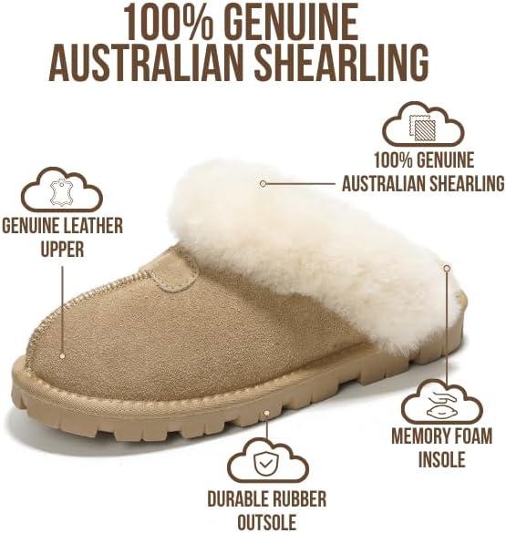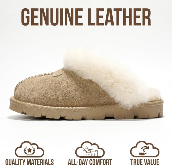 Project Cloud 100% Genuine Leather & Australian Shearling Slippers for Women – Cozy Memory Foam Women’s Slippers (Hedy)(Beige)