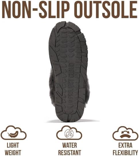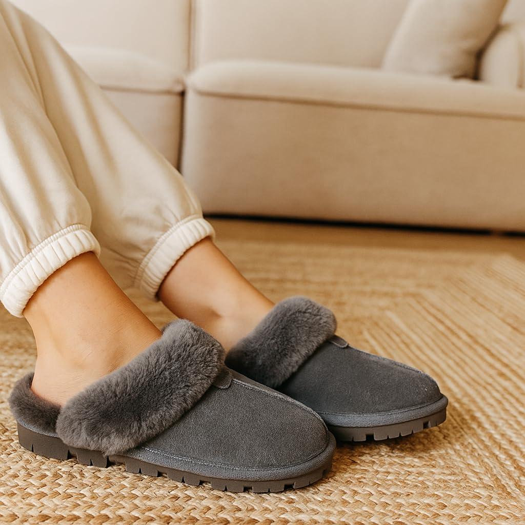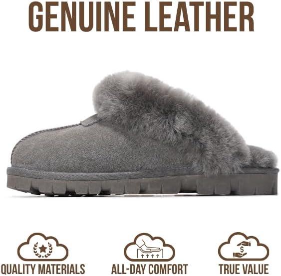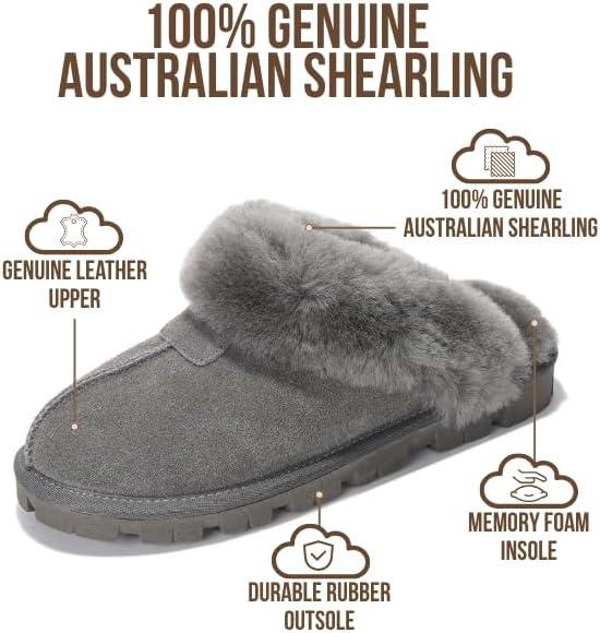 Project Cloud 100% Genuine Leather & Australian Shearling Slippers for Women – Cozy Memory Foam Women’s Slippers (Hedy)(Grey)