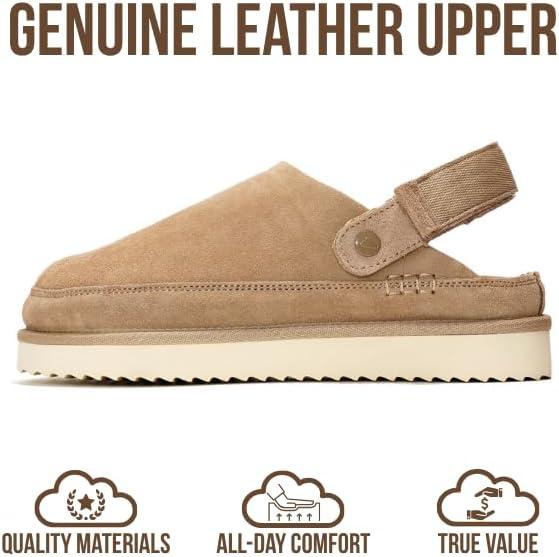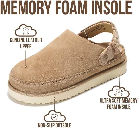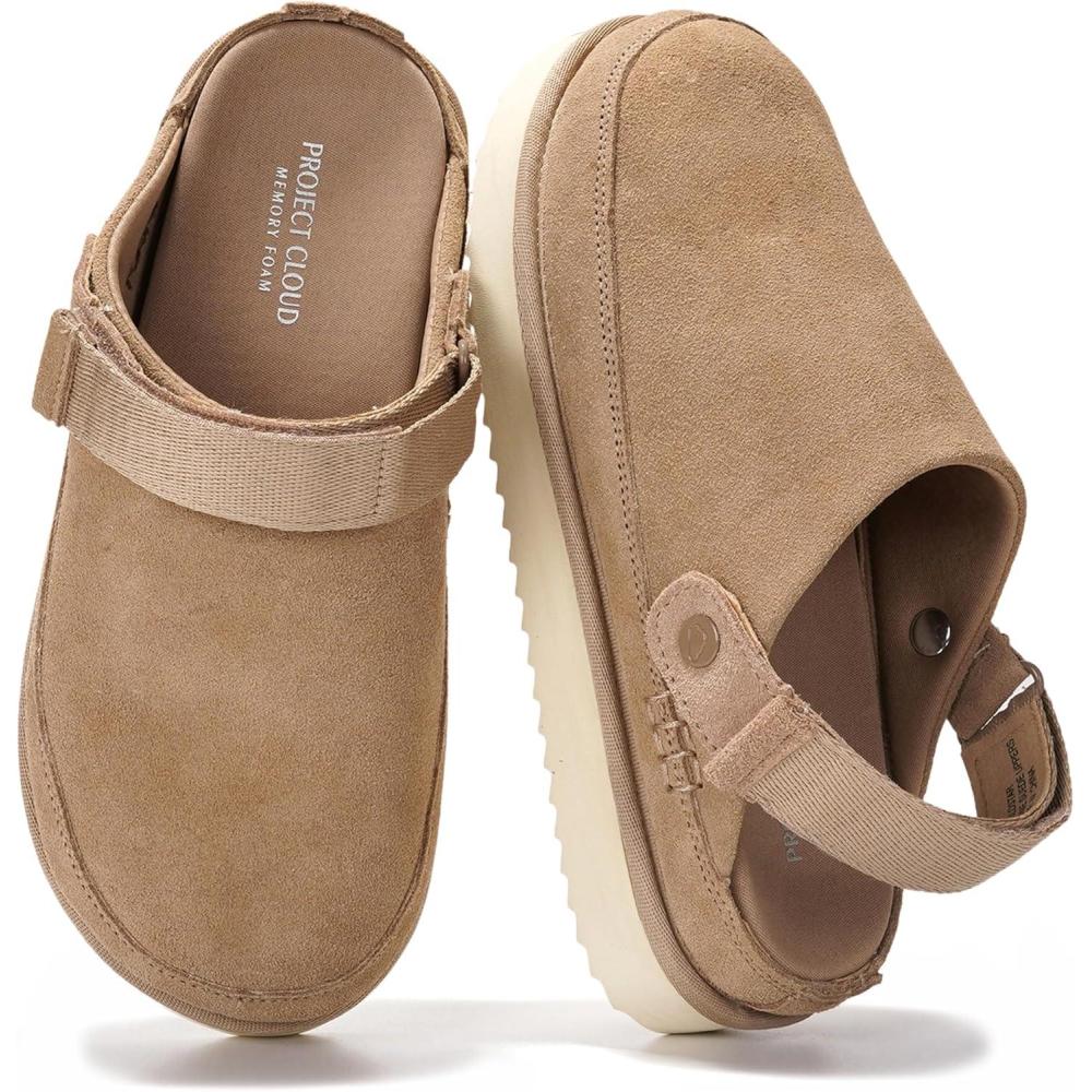 Project Cloud 100% Genuine Leather Clogs for Women – Memory Foam Womens Clogs & Mules with Adjustable Straps – Lightweight Platform Shoes Non-Slip Slides (Goldstar)(Sand Suede)
