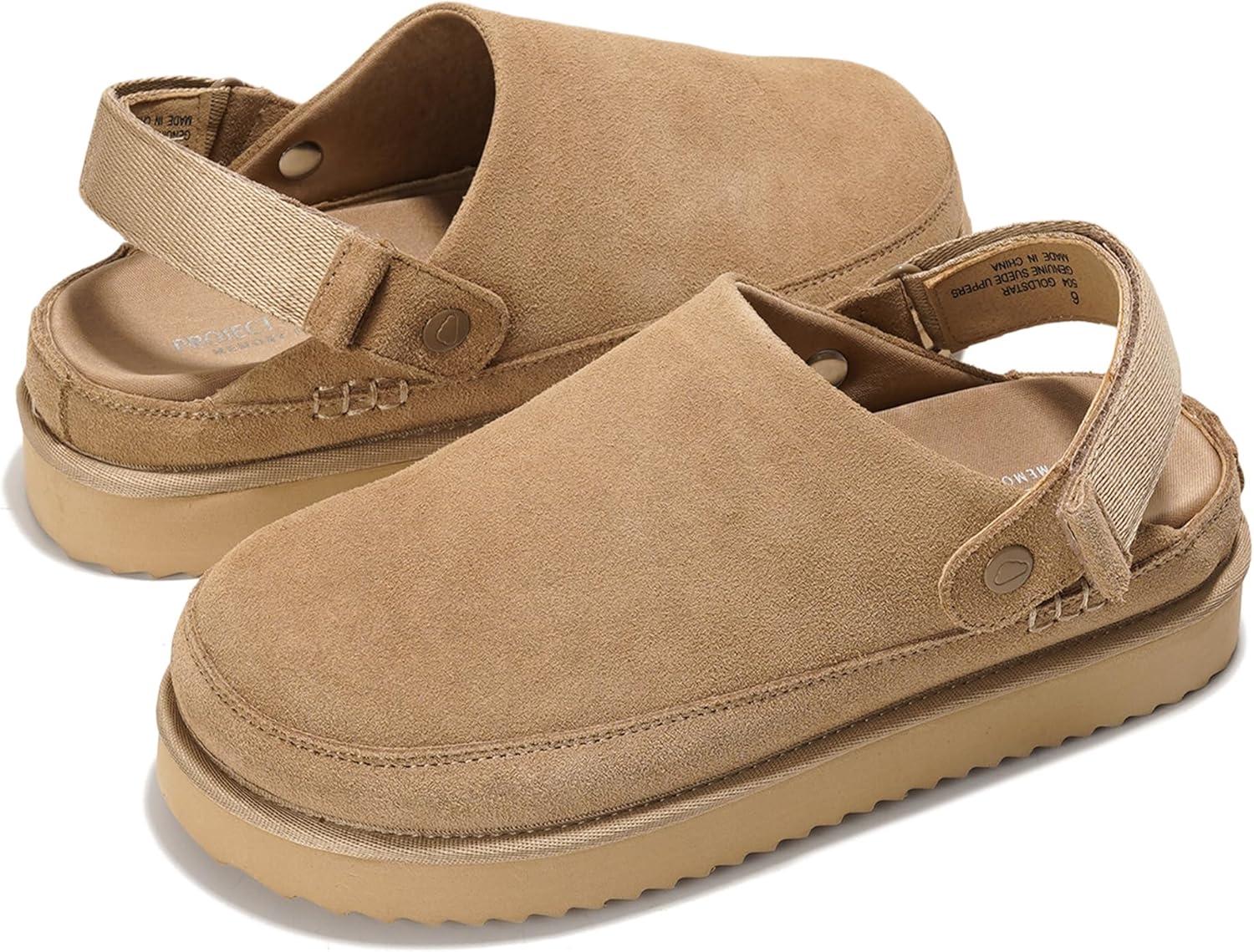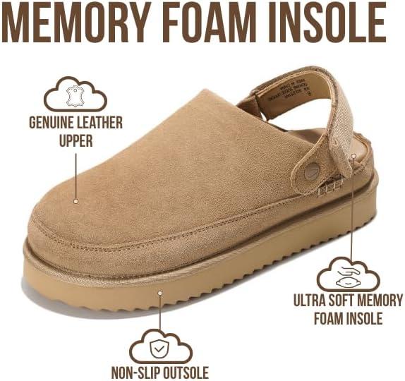 Project Cloud 100% Genuine Leather Clogs for Women – Memory Foam Womens Clogs & Mules with Adjustable Straps – Lightweight Platform Shoes Non-Slip Slides (Goldstar)(Sand)