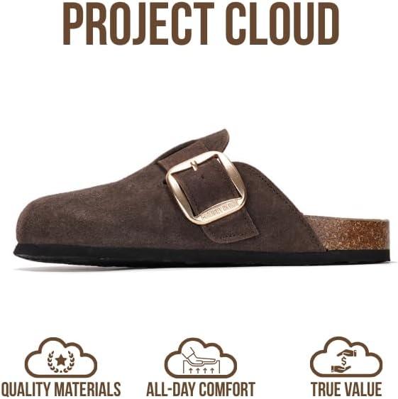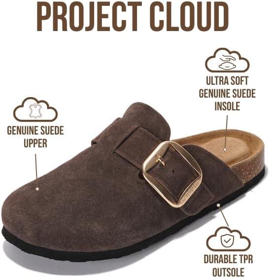 Project Cloud 100% Genuine Leather Clogs for Women Shoes – Memory Foam Insole, Non-Slip & Natural Cork Footbed Arch Support Big Buckle Womens Clogs and Mules Footwear (Manchester)(Choco Brown Suede)