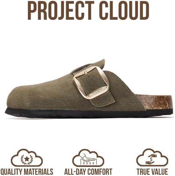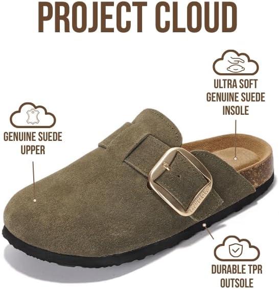 Project Cloud 100% Genuine Leather Clogs for Women Shoes – Memory Foam Insole, Non-Slip & Natural Cork Footbed Arch Support Big Buckle Womens Clogs and Mules Footwear (Manchester)(Olive)