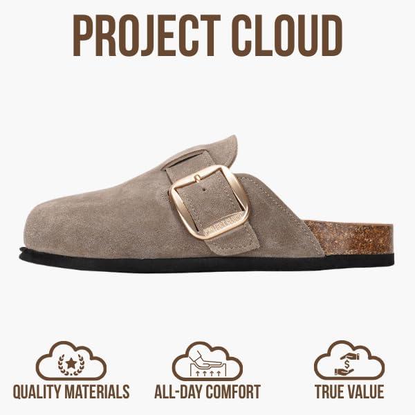 Project Cloud 100% Genuine Leather Clogs for Women Shoes – Memory Foam Insole, Non-Slip & Natural Cork Footbed Arch Support Big Buckle Womens Clogs and Mules Footwear (Manchester)(Taupe)