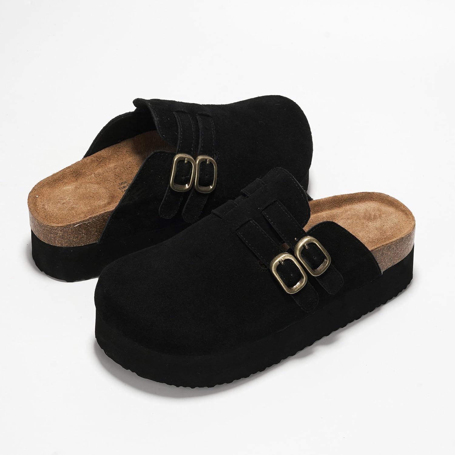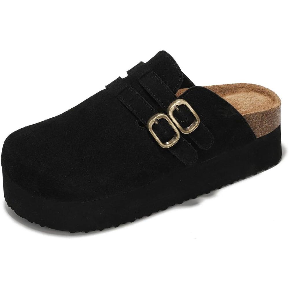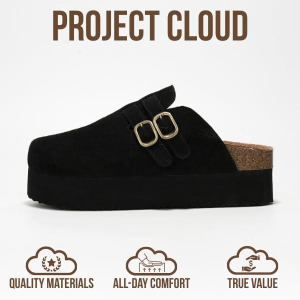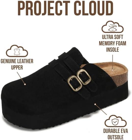 Project Cloud 100% Genuine Leather Clogs for Women – Wedge Womens Clogs Platform Sandals with Memory Foam Insole – Heeled Mules for Women 2025 (Stephi)(Black)