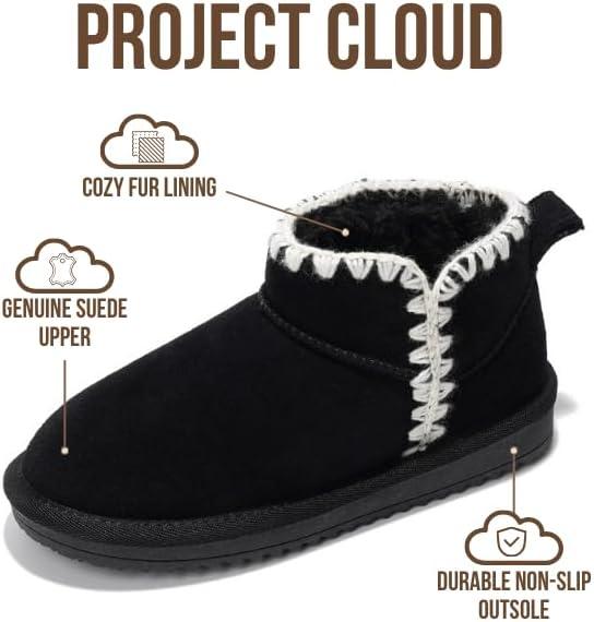 Project Cloud 100% Genuine Leather Girls Boots – Water Resistant & Lightweight Ankle Boots with Memory Foam – Cozy & Fur Non Slip Kids Boots for Girls & Boys, Perfect for Fall(Black Stitch)