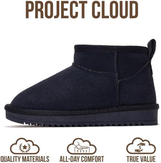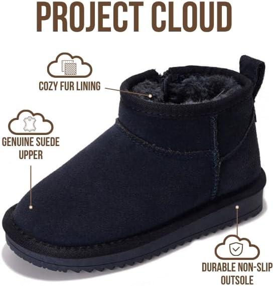 Project Cloud 100% Genuine Leather Girls Boots – Water Resistant & Lightweight Ankle Boots with Memory Foam – Cozy & Fur Non Slip Kids Boots for Girls & Boys, Perfect for Fall(Navy Suede)