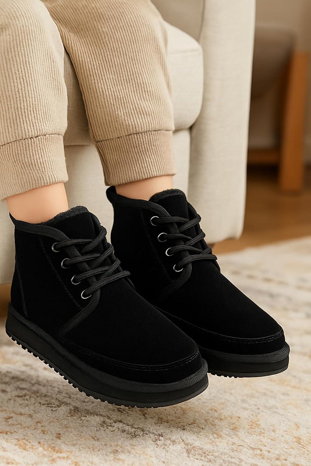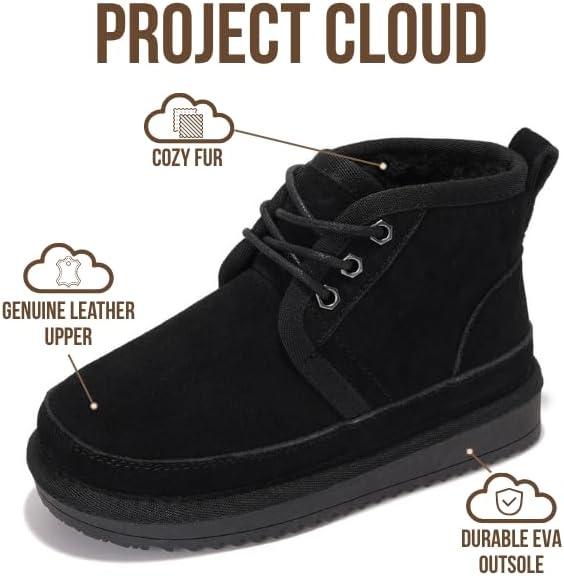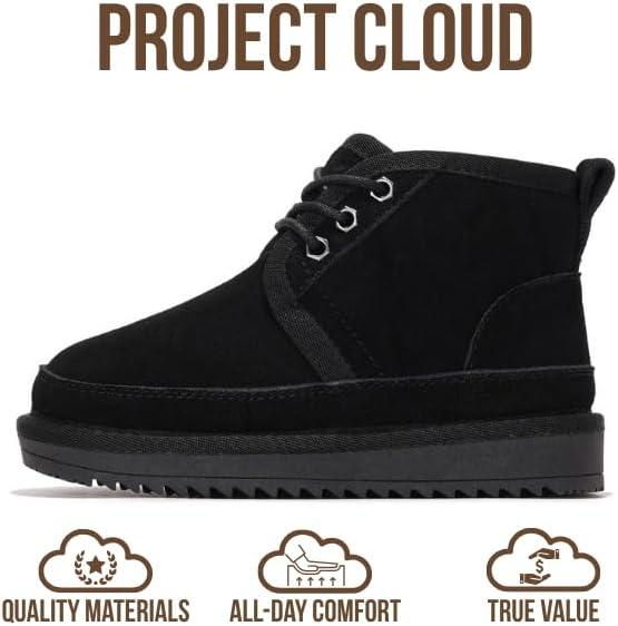 Project Cloud 100% Genuine Leather Kids Boots – Lightweight Fur-Lined Ankle Boots for Girls & Boys with Memory Foam Insole – Non-Slip Winter Kids Shoes (Nevada)(Black Suede)