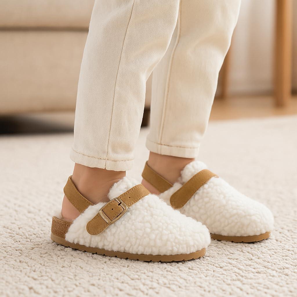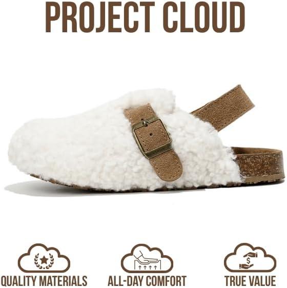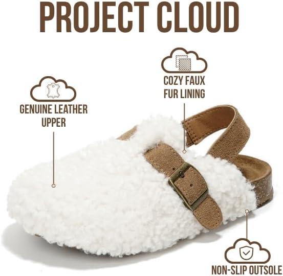 Project Cloud 100% Genuine Leather Kids Clogs with Cork Footbed Arch Support – Non-Slip Slippers & Sandals for Boys & Girls Footwear(White Fur Lined)