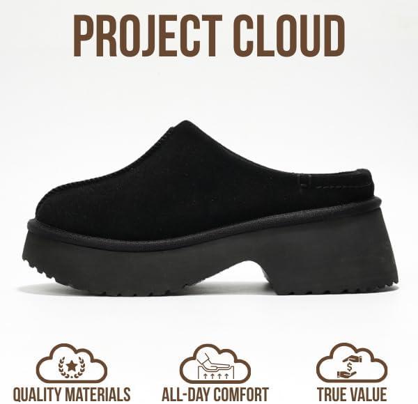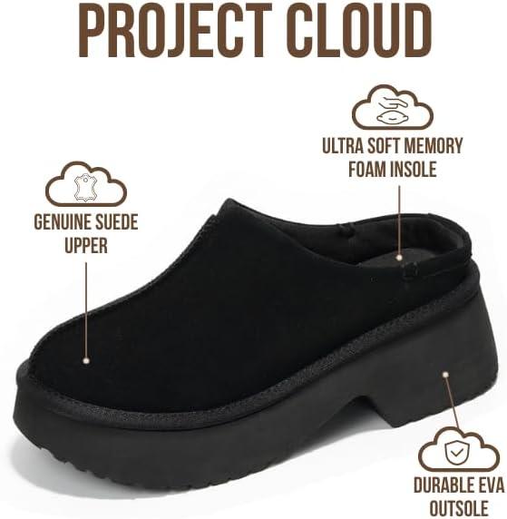Project Cloud 100% Genuine Leather Platform Clogs for Women Footwear – Memory Foam and Non-Slip Mules Shoes, Comfortable Stylish Closed Toe Clogs for Women 2025 (Johnna)(Black)