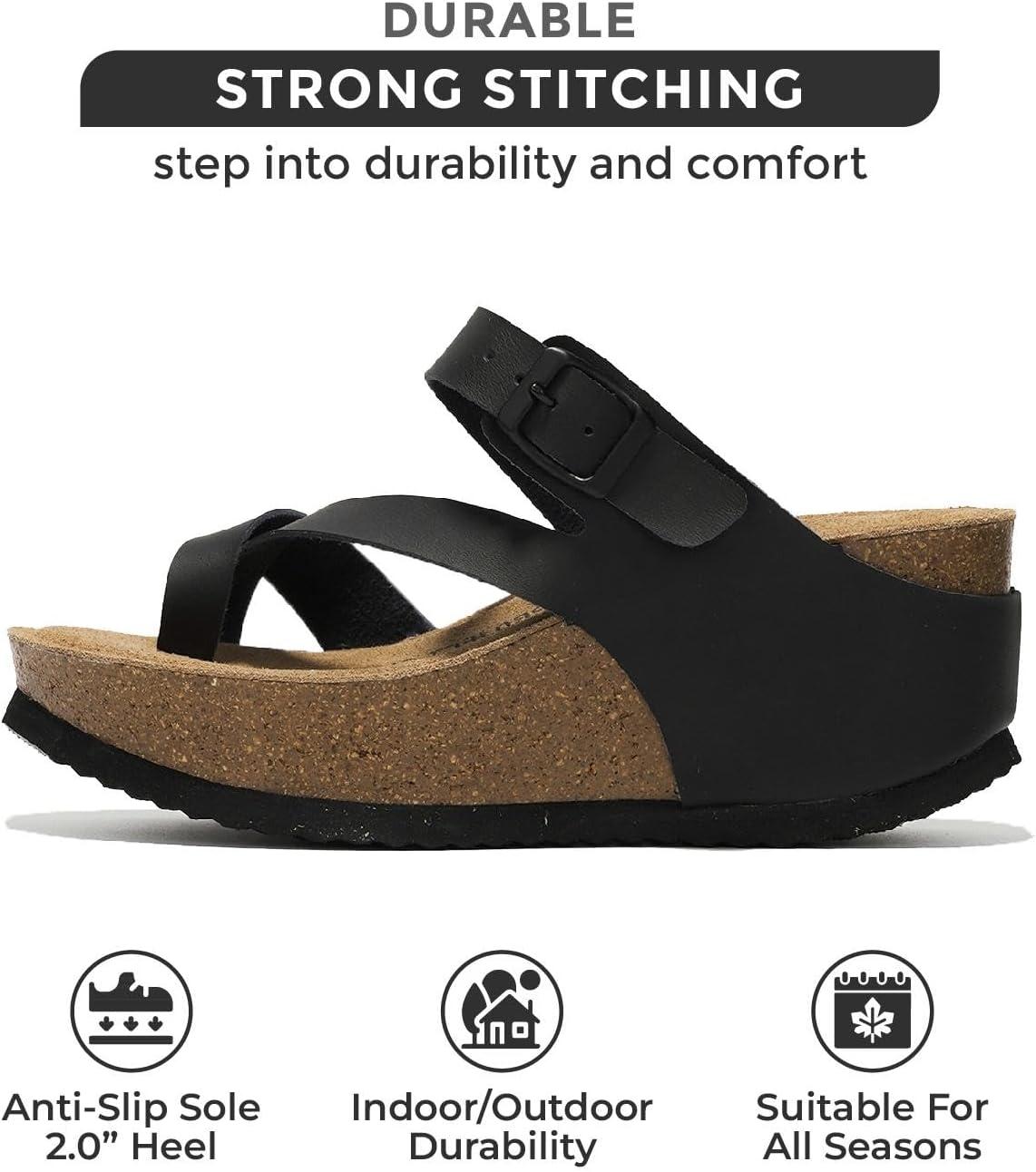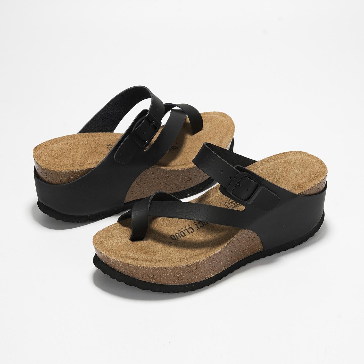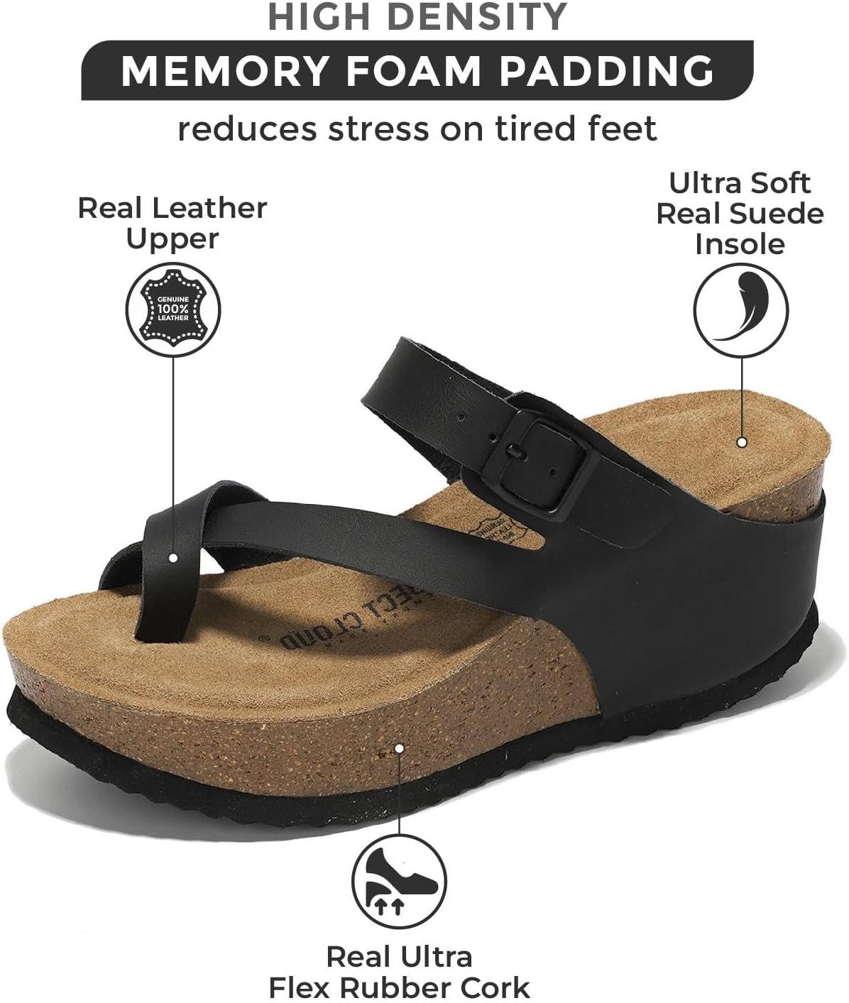 Project Cloud 100% Genuine Leather Platform Sandals Women – Memory Foam Womens Sandals & Slippers Beach Essentials – Wedge for Women with Straps (Mojito)(Black)