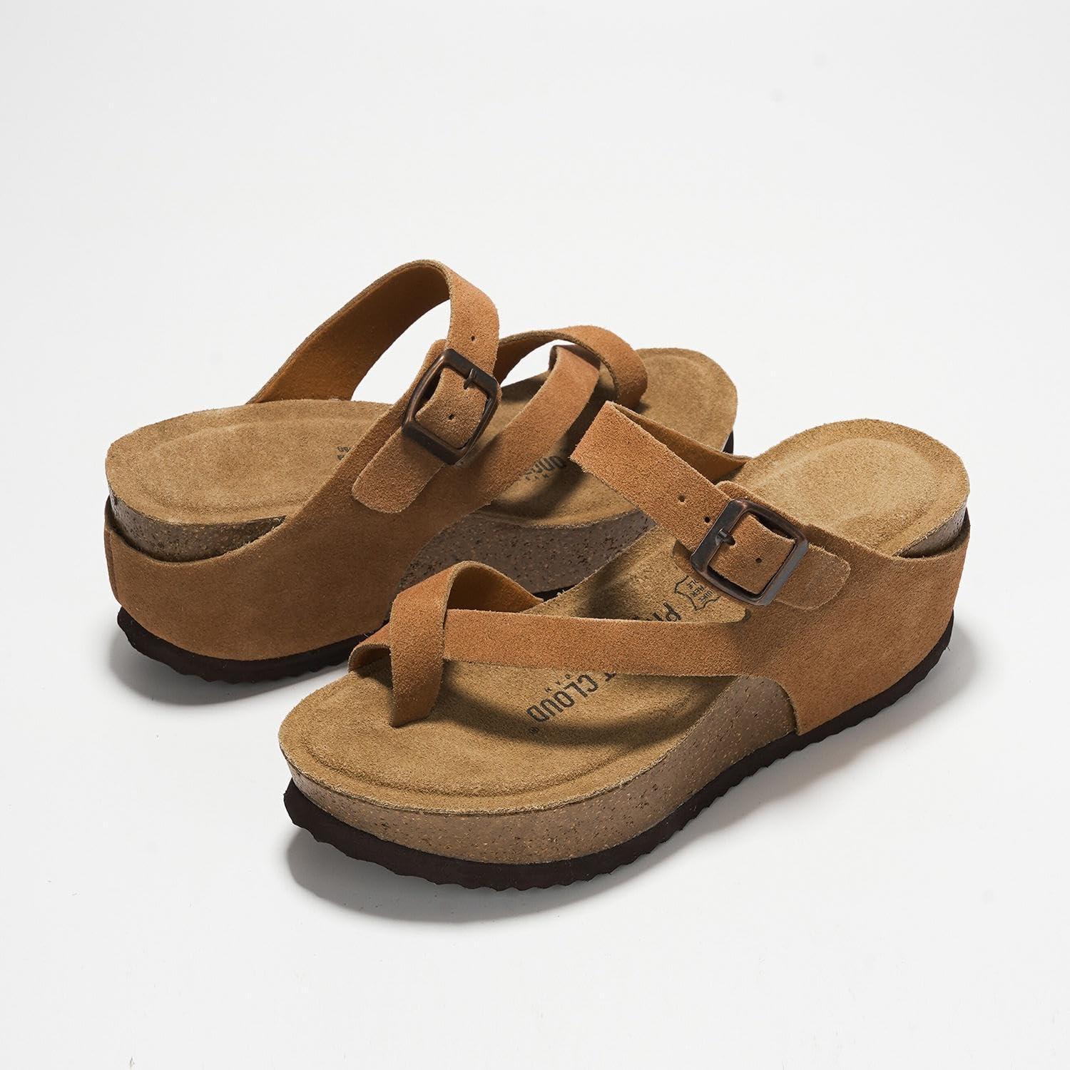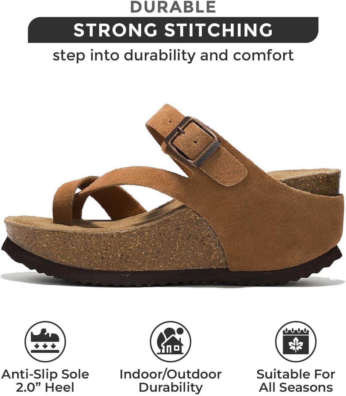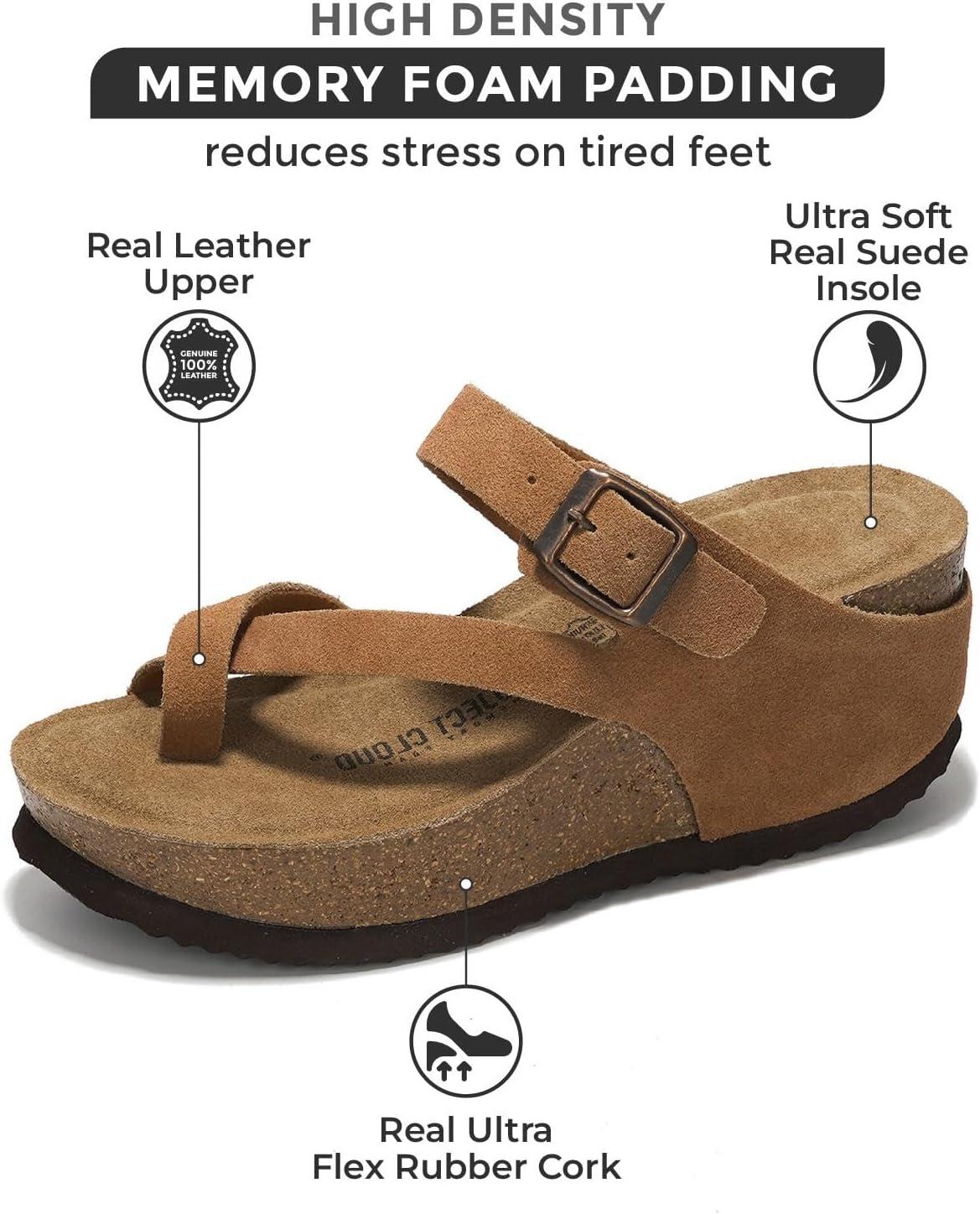Project Cloud 100% Genuine Leather Platform Sandals Women – Memory Foam Womens Sandals & Slippers Beach Essentials – Wedge for Women with Straps (Mojito)(Tan)