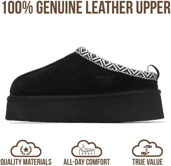 Project Cloud 100% Genuine Leather Platform Slippers for Women – Soft Memory Foam Womens Slippers & Supportive Clogs for Women 2025 – Cozy, Stylish Everyday Footwear (Sayre)(Black)