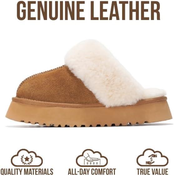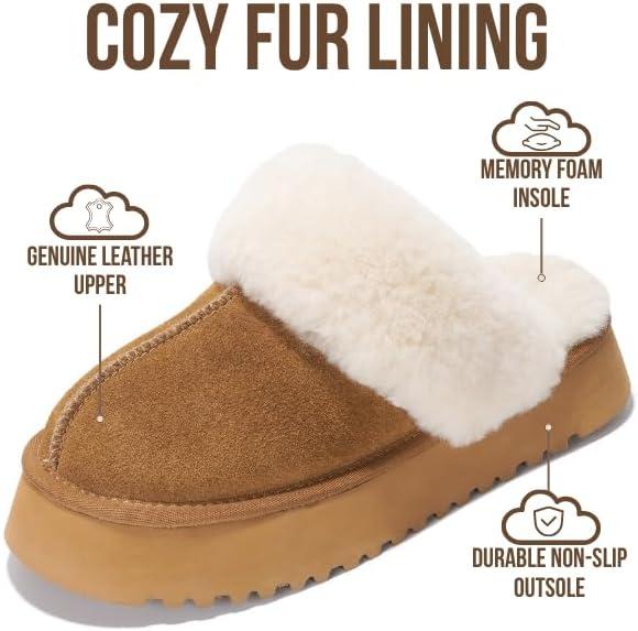 Project Cloud 100% Genuine Leather Slippers for Women Footwear – Memory Foam Clogs and Mules for Women 2025 – Non Slip and Lightweight Fur Slippers (Viki)(Chestnut – Viki)