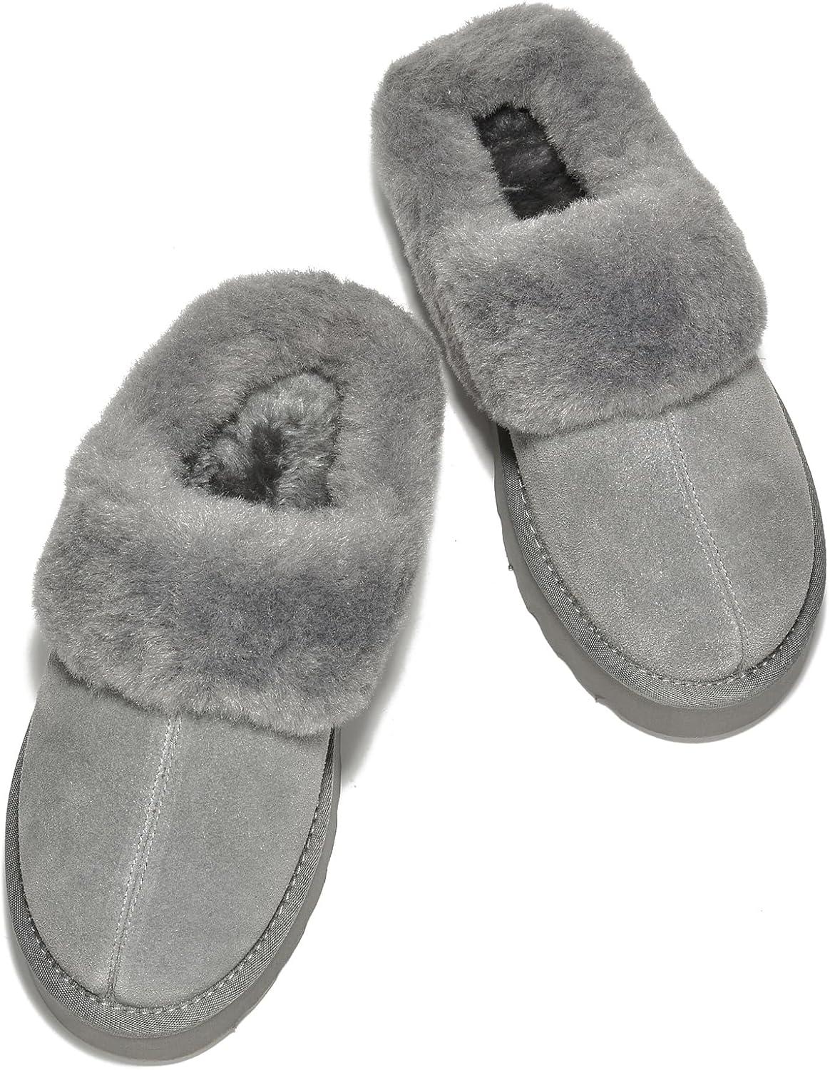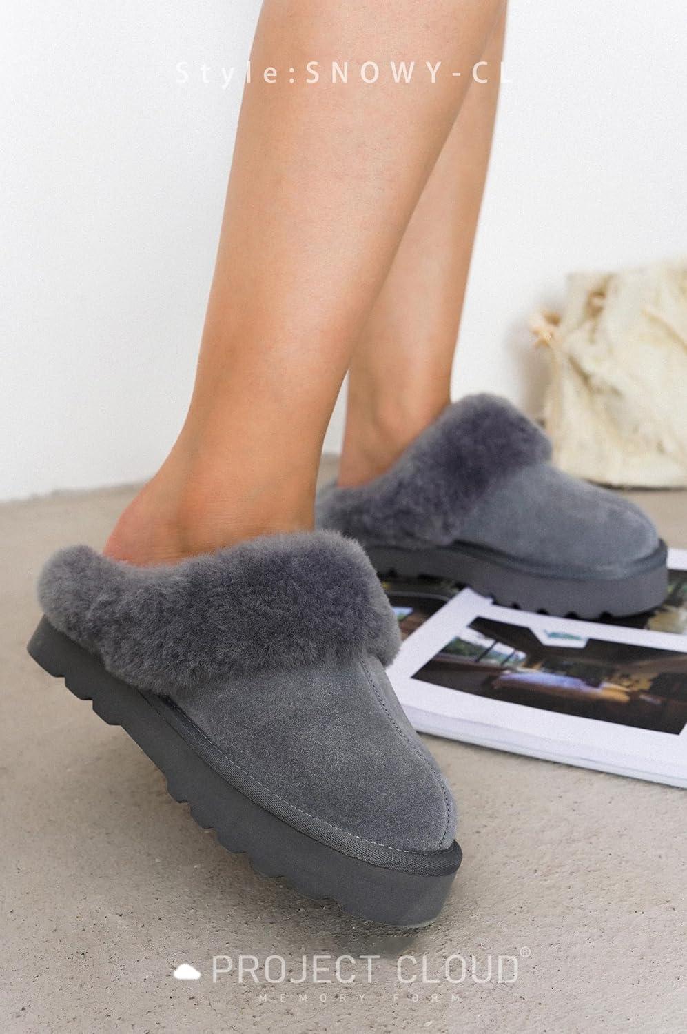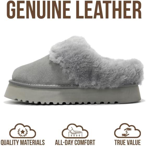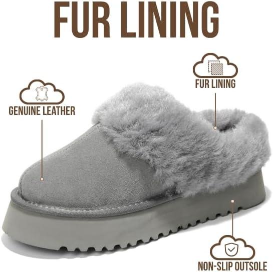 Project Cloud 100% Genuine Leather Slippers for Women Footwear – Memory Foam Clogs and Mules for Women 2025 – Non Slip and Lightweight Fur Slippers (Viki)(Grey – Snowy)