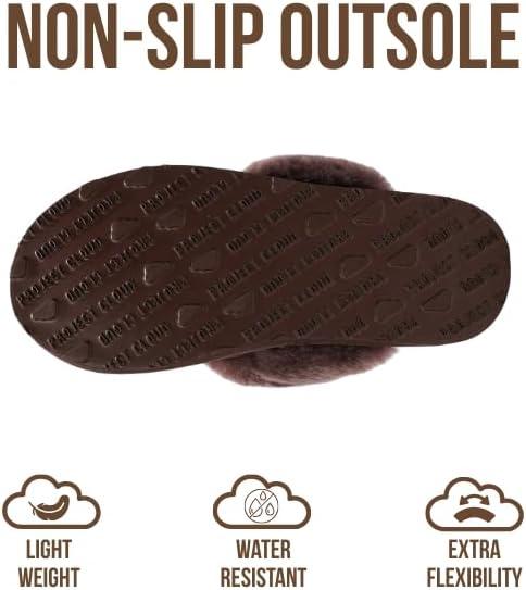 Project Cloud 100% Genuine Leather Slippers for Women Footwear with Genuine Fur Lining Womens Clogs & Mule – Non-Slip Indoor/Outdoor Scuff Womens Slippers with Memory Foam Insole (Henka)(Chocolate Brown)