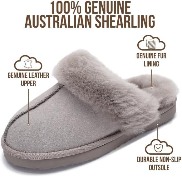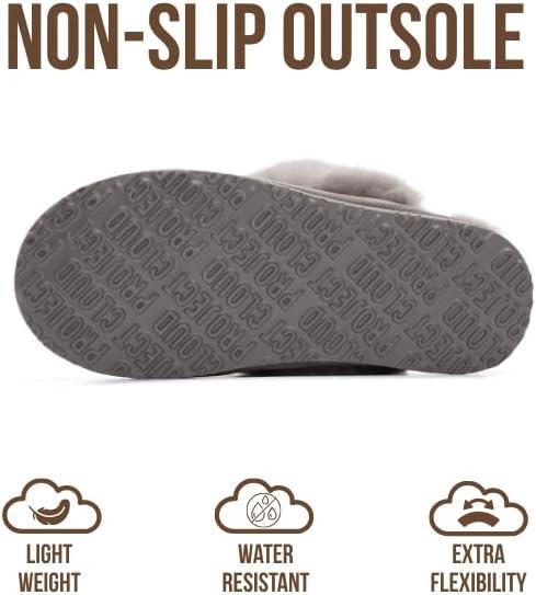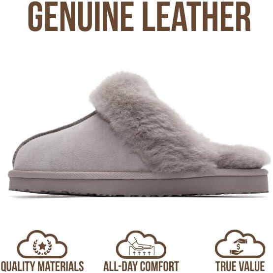Project Cloud 100% Genuine Leather Slippers for Women Footwear with Genuine Fur Lining Womens Clogs & Mule – Non-Slip Indoor/Outdoor Scuff Womens Slippers with Memory Foam Insole (Henka)(Grey)