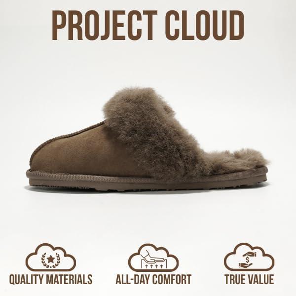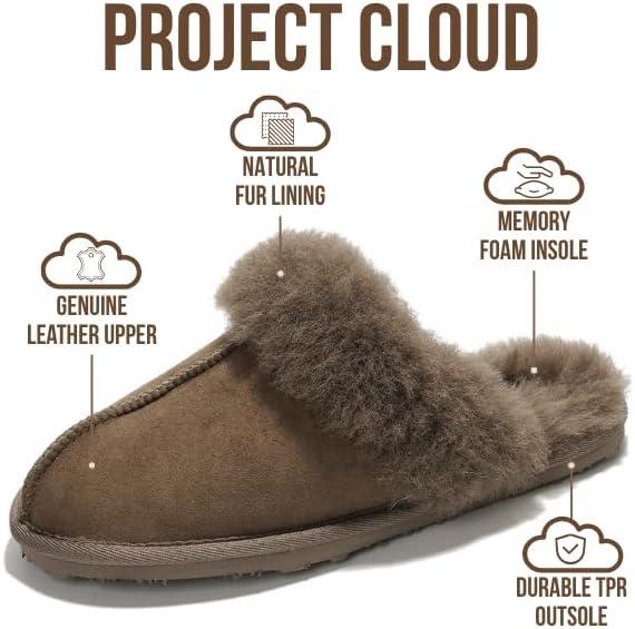 Project Cloud 100% Genuine Leather Slippers for Women Footwear with Genuine Fur Lining Womens Clogs & Mule – Non-Slip Indoor/Outdoor Scuff Womens Slippers with Memory Foam Insole (Henka)(Scuff-taupe)