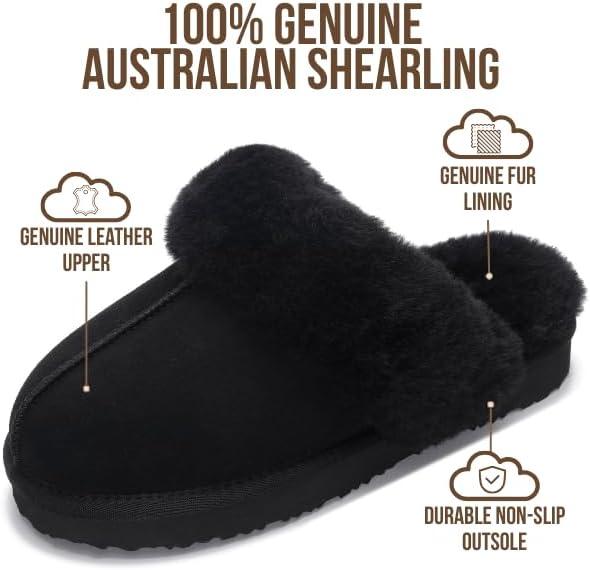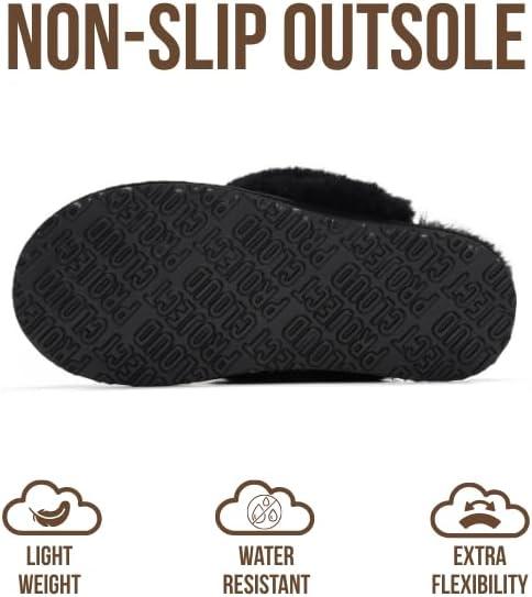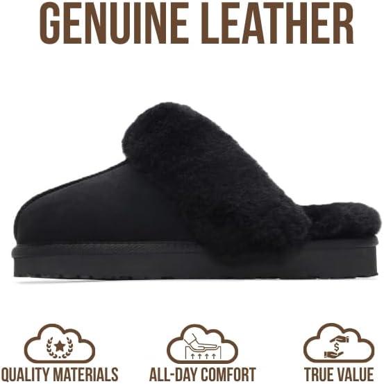 Project Cloud 100% Genuine Leather Slippers for Women Footwear with Genuine Fur Lining Womens Clogs & Mule – Non-Slip Indoor/Outdoor Scuff Womens Slippers with Memory Foam Insole(Black)