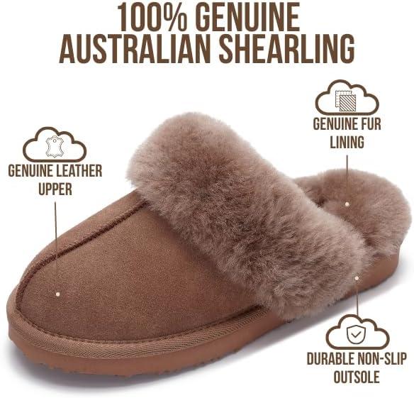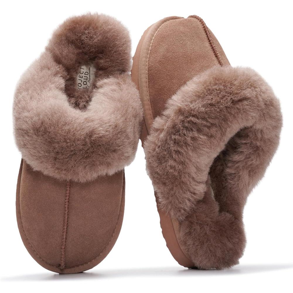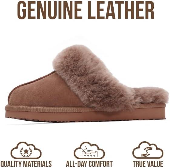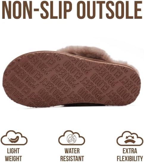 Project Cloud 100% Genuine Leather Slippers for Women Footwear with Genuine Fur Lining Womens Clogs & Mule – Non-Slip Indoor/Outdoor Scuff Womens Slippers with Memory Foam Insole(Camel Suede)
