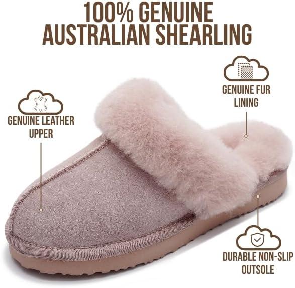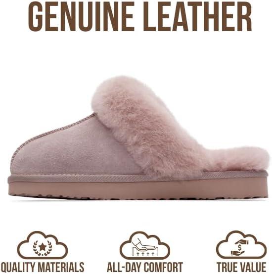 Project Cloud 100% Genuine Leather Slippers for Women Footwear with Genuine Fur Lining Womens Clogs & Mule – Non-Slip Indoor/Outdoor Scuff Womens Slippers with Memory Foam Insole(Dusty Pink Suede)
