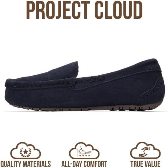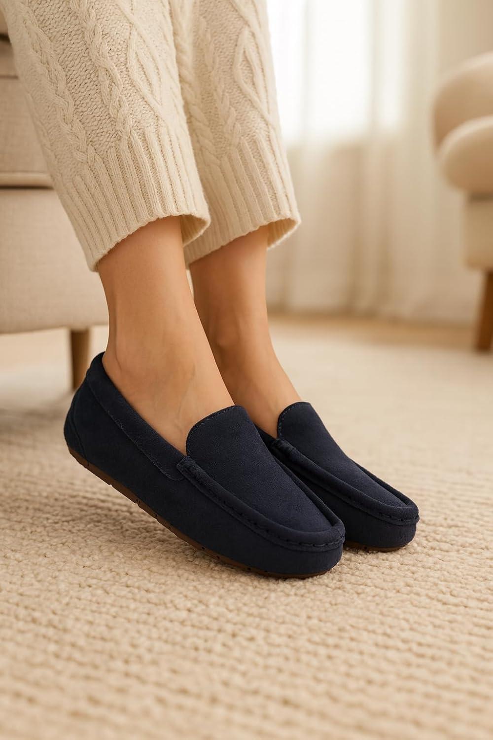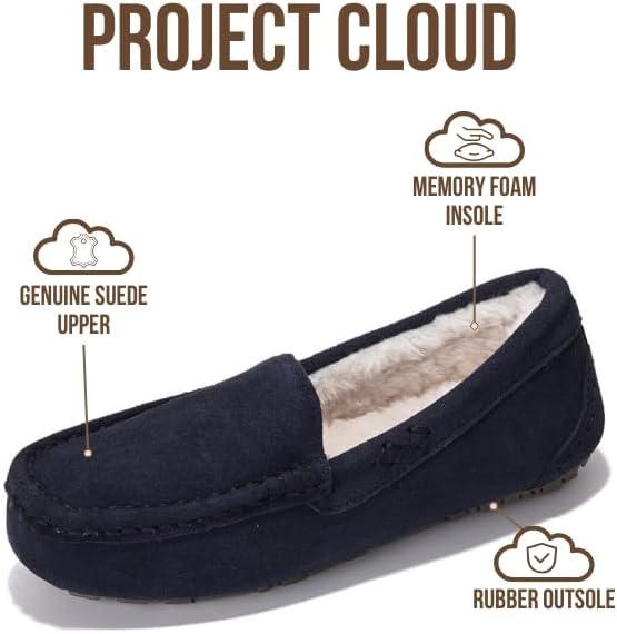 Project Cloud 100% Genuine Leather Slippers for Women – Fur Lined Outdoor Slippers for Women Footwear with Memory Foam – Stylish Womens Moccasin (Cathi)(Navy Suede)