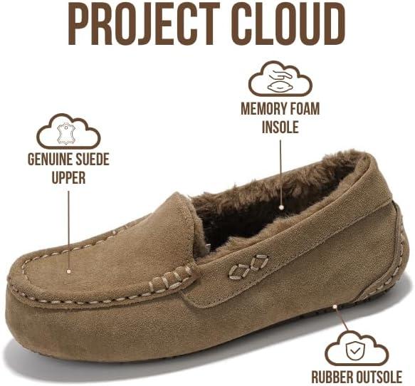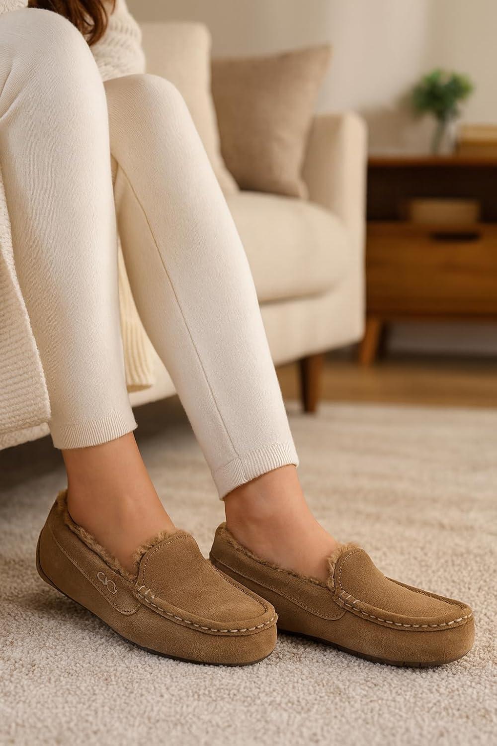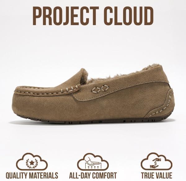 Project Cloud 100% Genuine Leather Slippers for Women – Fur Lined Outdoor Slippers for Women Footwear with Memory Foam – Stylish Womens Moccasin (Cathi)(Taupe)