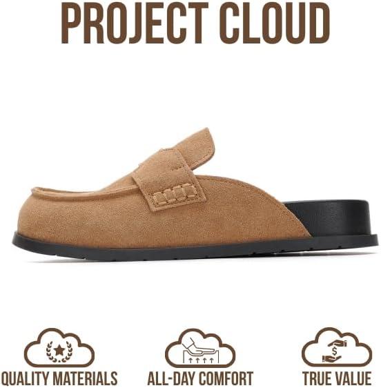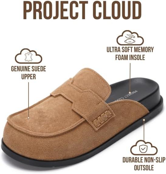 Project Cloud 100% Genuine Leather Womens Clog – Memory Foam Arch Support Non-Slip Sole Mules & Clogs for Women Footwear – Platform Winter Shoes (Foamy)(Almond Suede)