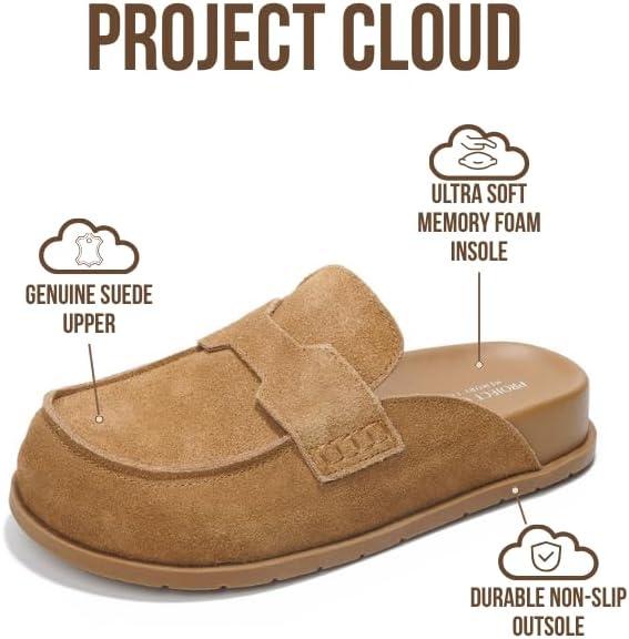 Project Cloud 100% Genuine Leather Womens Clog – Memory Foam Arch Support Non-Slip Sole Mules & Clogs for Women Footwear – Platform Winter Shoes (Foamy)(Chestnut Suede)