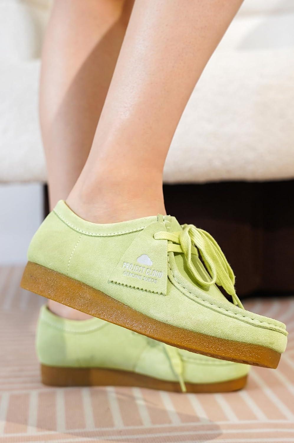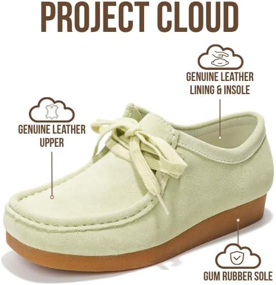 Project Cloud 100% Genuine Leather Womens Shoes – Memory Foam Insole Oxford Shoes For Women Footwear – Lightweight Anti-Slip Sole Casual Work Loafers with Lace (Wally)(Green)