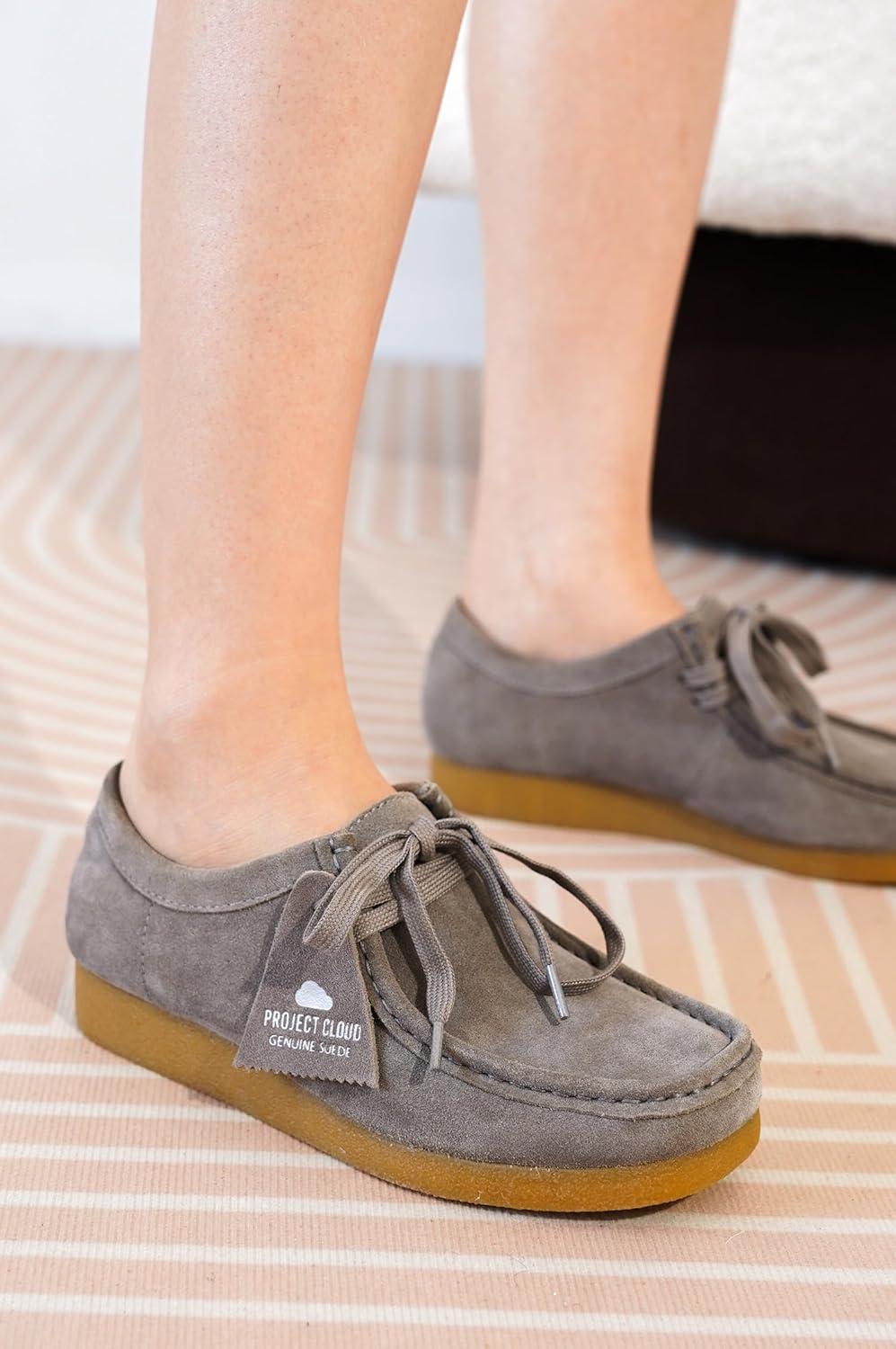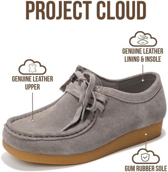 Project Cloud 100% Genuine Leather Womens Shoes – Memory Foam Insole Oxford Shoes For Women Footwear – Lightweight Anti-Slip Sole Casual Work Loafers with Lace (Wally)(Grey)