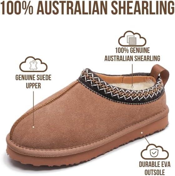 Project Cloud 100% Genuine Leather Womens Slippers with Genuine Australian Shearling Fur Lining Slippers for Women – Non-Slip EVA with Memory Foam Fuzzy Slippers Women Footwear (Nerita)(Camel Mono Suede)