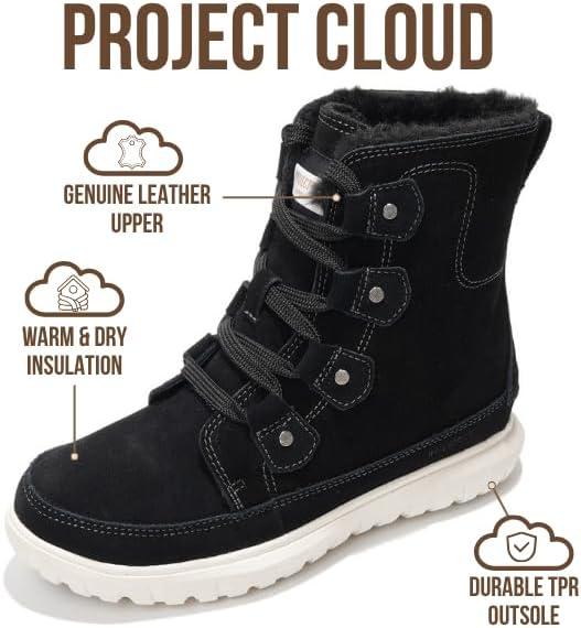 Project Cloud 100% Genuine Leather Womens Snow Boots- Genuine Leather Waterproof Memory Foam Insole and Non-Slip Winter Snow Boots For Women Footwear – Outdoor Shoes (Leonora)(Black)