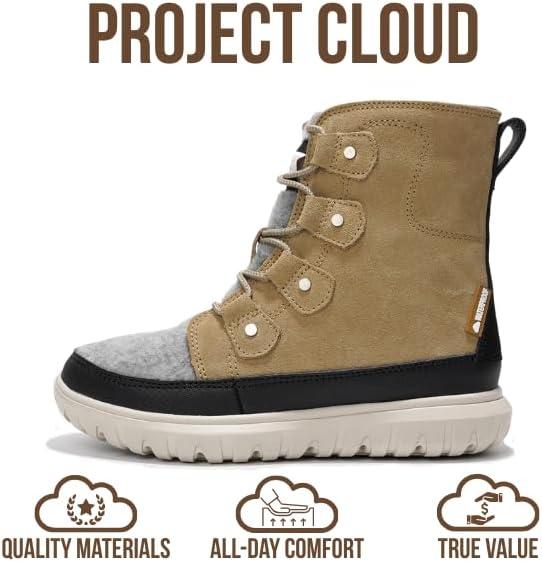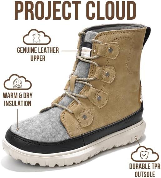 Project Cloud 100% Genuine Leather Womens Snow Boots- Genuine Leather Waterproof Memory Foam Insole and Non-Slip Winter Snow Boots For Women Footwear – Outdoor Shoes (Leonora)(Taupe)