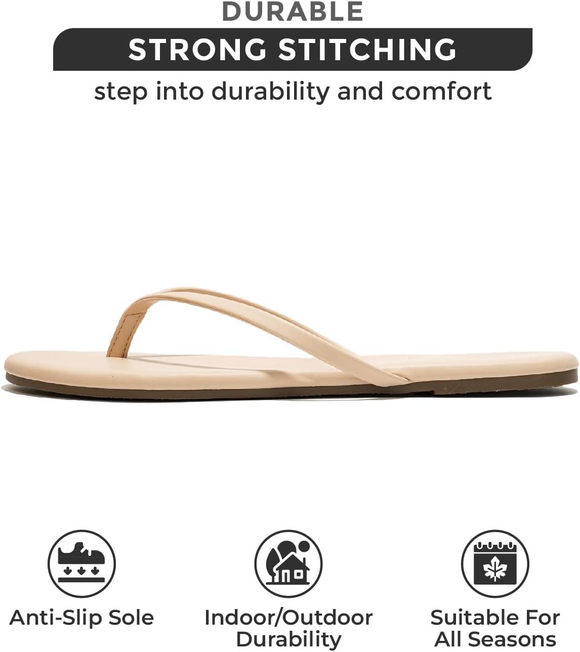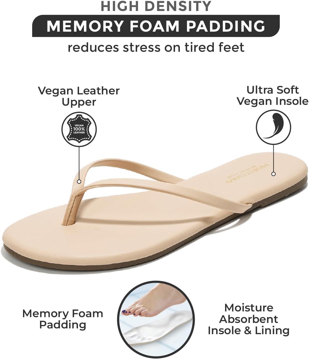 Project Cloud Flip Flops for Women – Memory Foam Flats Summer Sandals for Women 2025 – Vegan Leather Lightweight Womens Sandals Summer Beach Essentials Slides(Beige)