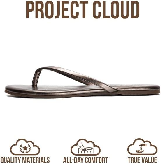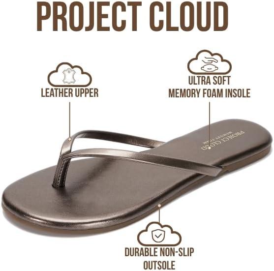Project Cloud Flip Flops for Women – Memory Foam Flats Summer Sandals for Women 2025 – Vegan Leather Lightweight Womens Sandals Summer Beach Essentials Slides(Bronze)