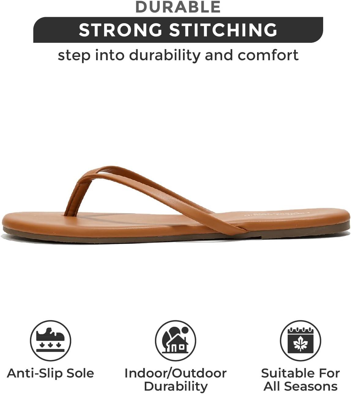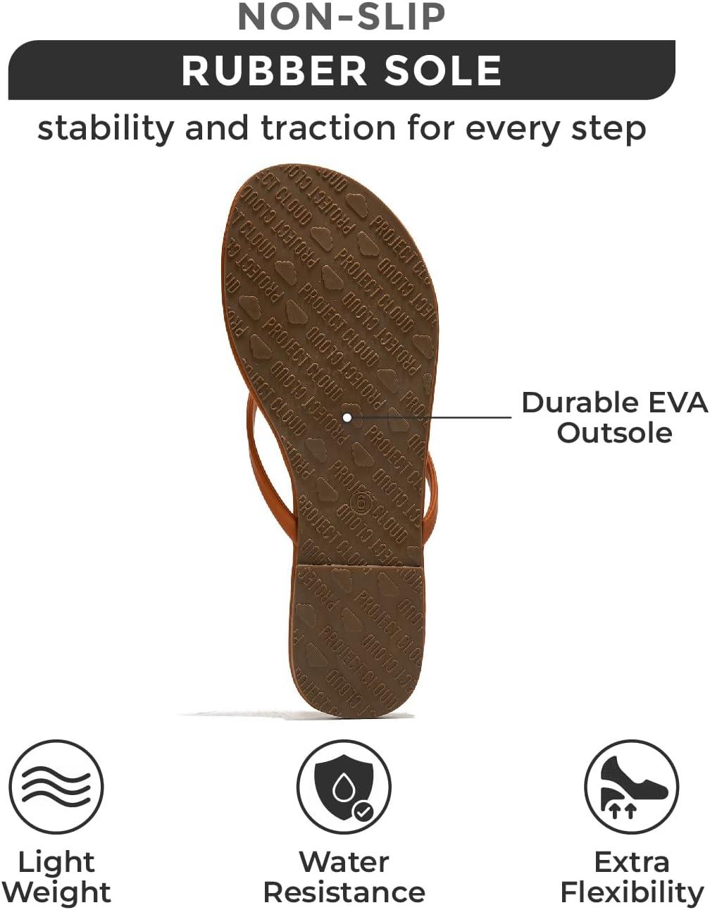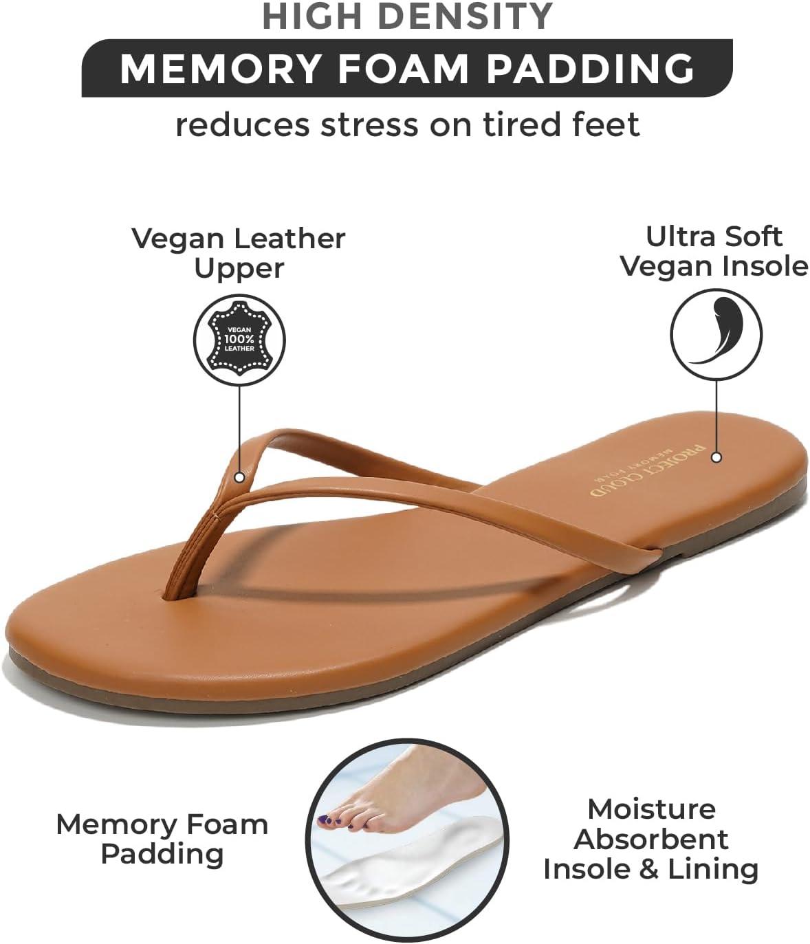 Project Cloud Flip Flops for Women – Memory Foam Flats Summer Sandals for Women 2025 – Vegan Leather Lightweight Womens Sandals Summer Beach Essentials Slides(Cognac)