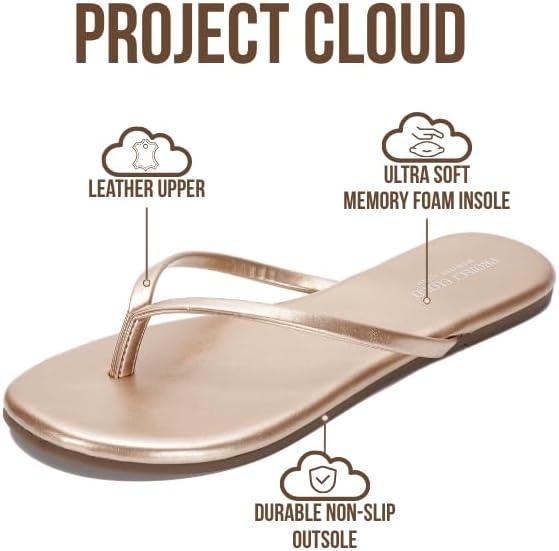 Project Cloud Flip Flops for Women – Memory Foam Flats Summer Sandals for Women 2025 – Vegan Leather Lightweight Womens Sandals Summer Beach Essentials Slides(Copper)
