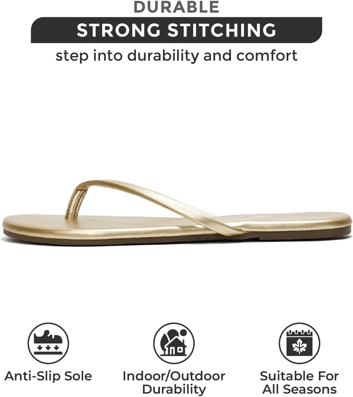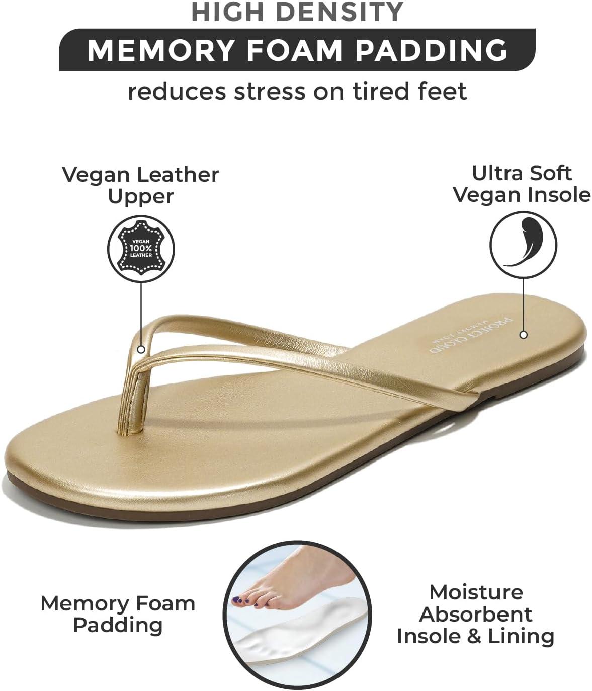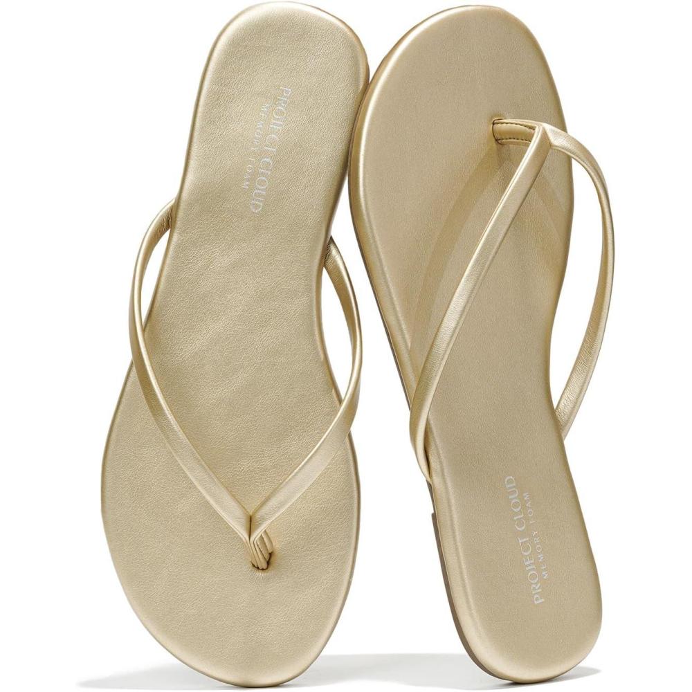 Project Cloud Flip Flops for Women – Memory Foam Flats Summer Sandals for Women 2025 – Vegan Leather Lightweight Womens Sandals Summer Beach Essentials Slides(Gold)
