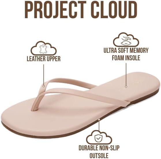 Project Cloud Flip Flops for Women – Memory Foam Flats Summer Sandals for Women 2025 – Vegan Leather Lightweight Womens Sandals Summer Beach Essentials Slides(Mauve)