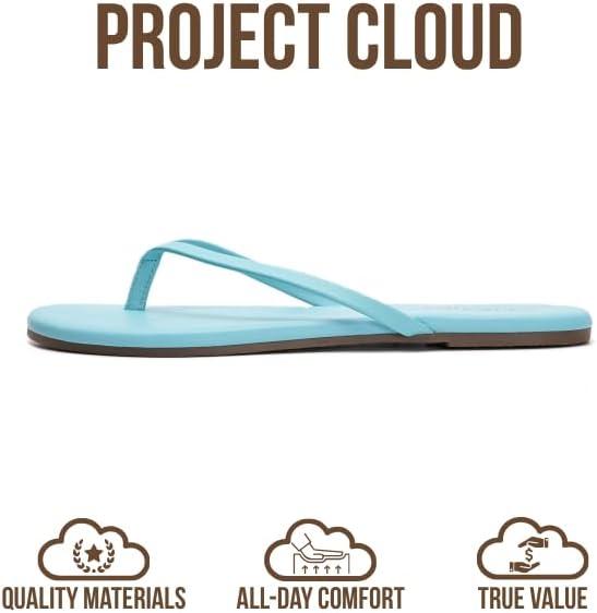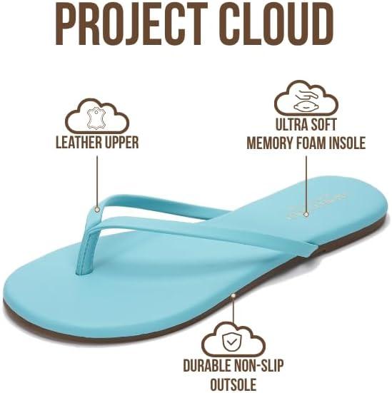 Project Cloud Flip Flops for Women – Memory Foam Flats Summer Sandals for Women 2025 – Vegan Leather Lightweight Womens Sandals Summer Beach Essentials Slides(Turquoise)