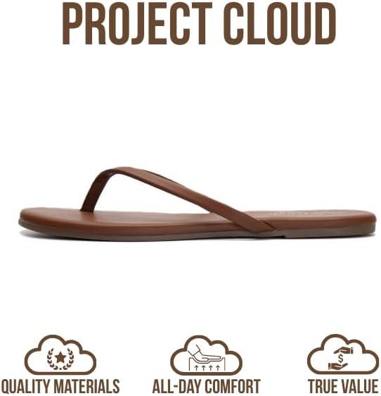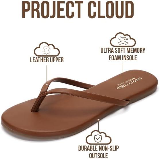 Project Cloud Flip Flops for Women – Memory Foam Flats Summer Sandals for Women 2025 – Vegan Leather Lightweight Womens Sandals Summer Beach Essentials Slides(Whiskey)