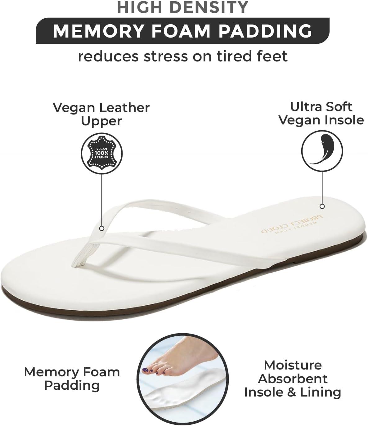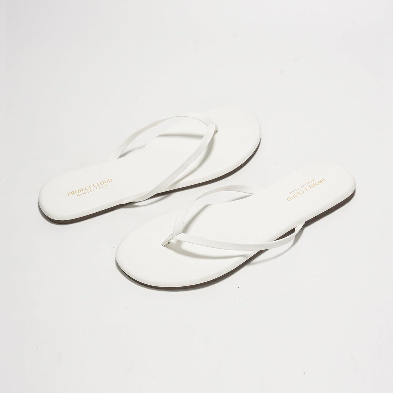 Project Cloud Flip Flops for Women – Memory Foam Flats Summer Sandals for Women 2025 – Vegan Leather Lightweight Womens Sandals Summer Beach Essentials Slides(White)