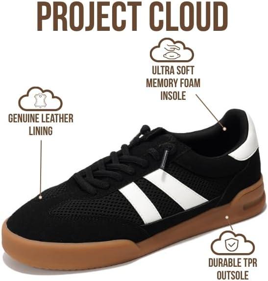 Project Cloud Genuine Leather Casual Sneakers for Women – Memory Foam Insoles Lace-Up Womens Shoes & Lightweight Women’s Fashion Sneakers – Non-Slip Shoes for Women Footwear (Verdict)(Black)