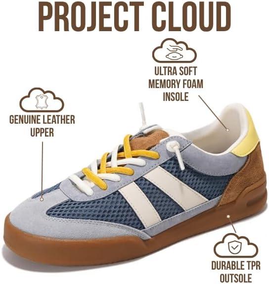 Project Cloud Genuine Leather Casual Sneakers for Women – Memory Foam Insoles Lace-Up Womens Shoes & Lightweight Women’s Fashion Sneakers – Non-Slip Shoes for Women Footwear (Verdict)(Blue Suede)