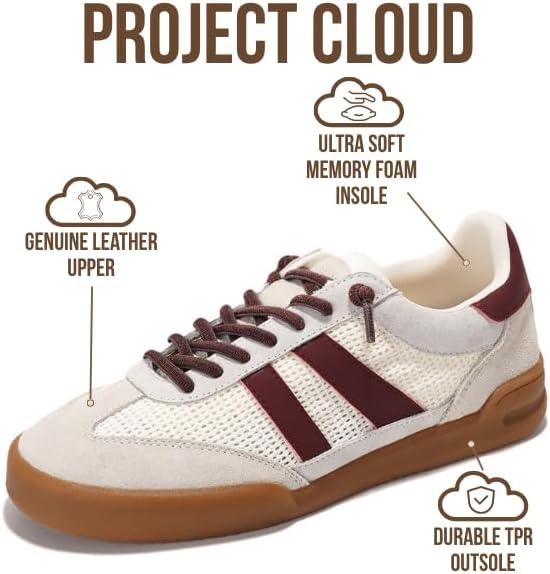 Project Cloud Genuine Leather Casual Sneakers for Women – Memory Foam Insoles Lace-Up Womens Shoes & Lightweight Women’s Fashion Sneakers – Non-Slip Shoes for Women Footwear (Verdict)(Burgundy Suede)